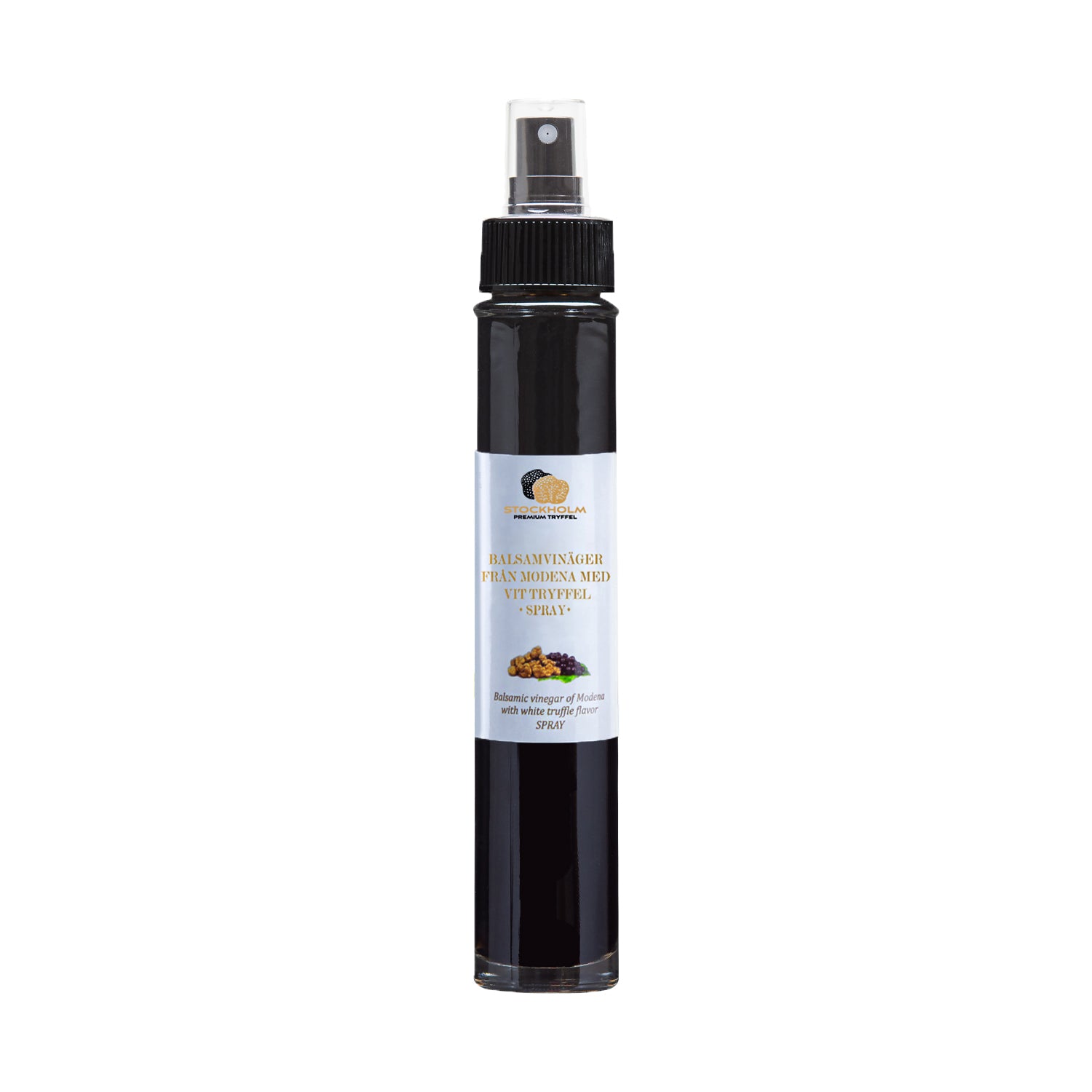Upplev den exklusiva smaken av vit tryffel med vår balsamico-spray. Perfekt för att förhöja sallader, risotto, pasta, fisk eller kött – ett enda spray ger din rätt en fantastisk tryffelsmak och en autentisk balsamicoarom. Använd den även för att förvandla desserter gjorda på jordgubbar, päron och glass, eller skapa en elegant twist på chokladtryfflar och chokladdesserter på mörk choklad. En lyxig och enkel produkt som ger varje måltid och efterrätt en smak av det exklusiva.