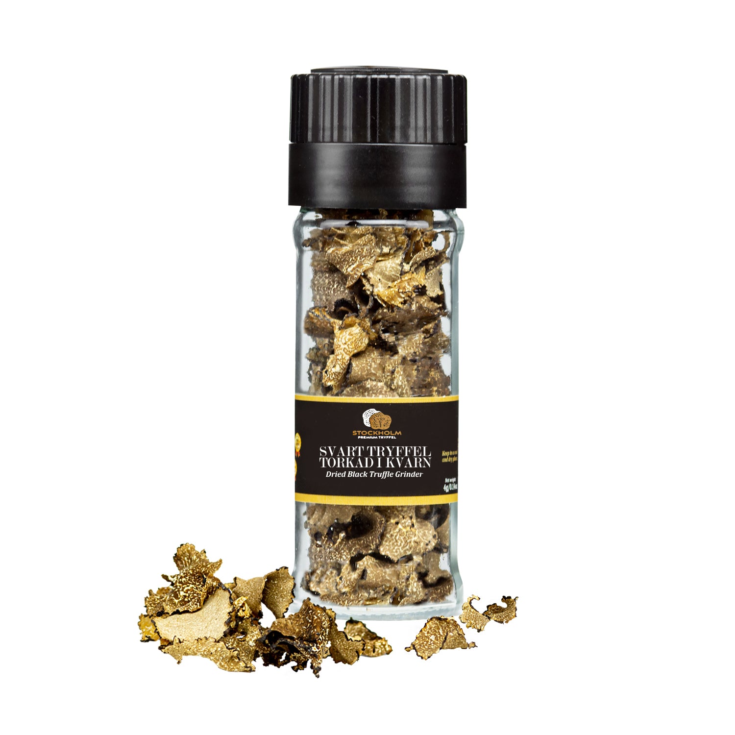 Förhöj dina rätter med vår svarta torkade tryffel i kvarn – en elegant och praktisk delikatess som ger dig tryffelns distinkta smak med ett enkelt twist. Den torkade svarta tryffeln bevarar sin intensiva arom och djupa karaktär, redo att strös över allt från pasta, risotto och ägg till kött och grönsaker. Perfekt att ha nära till hands i köket för att snabbt addera en touch av lyx i vardagen. En stilren tryffelkvarn fylld med smakrik elegans – den ultimata smaksättaren för alla som älskar det lilla extra.