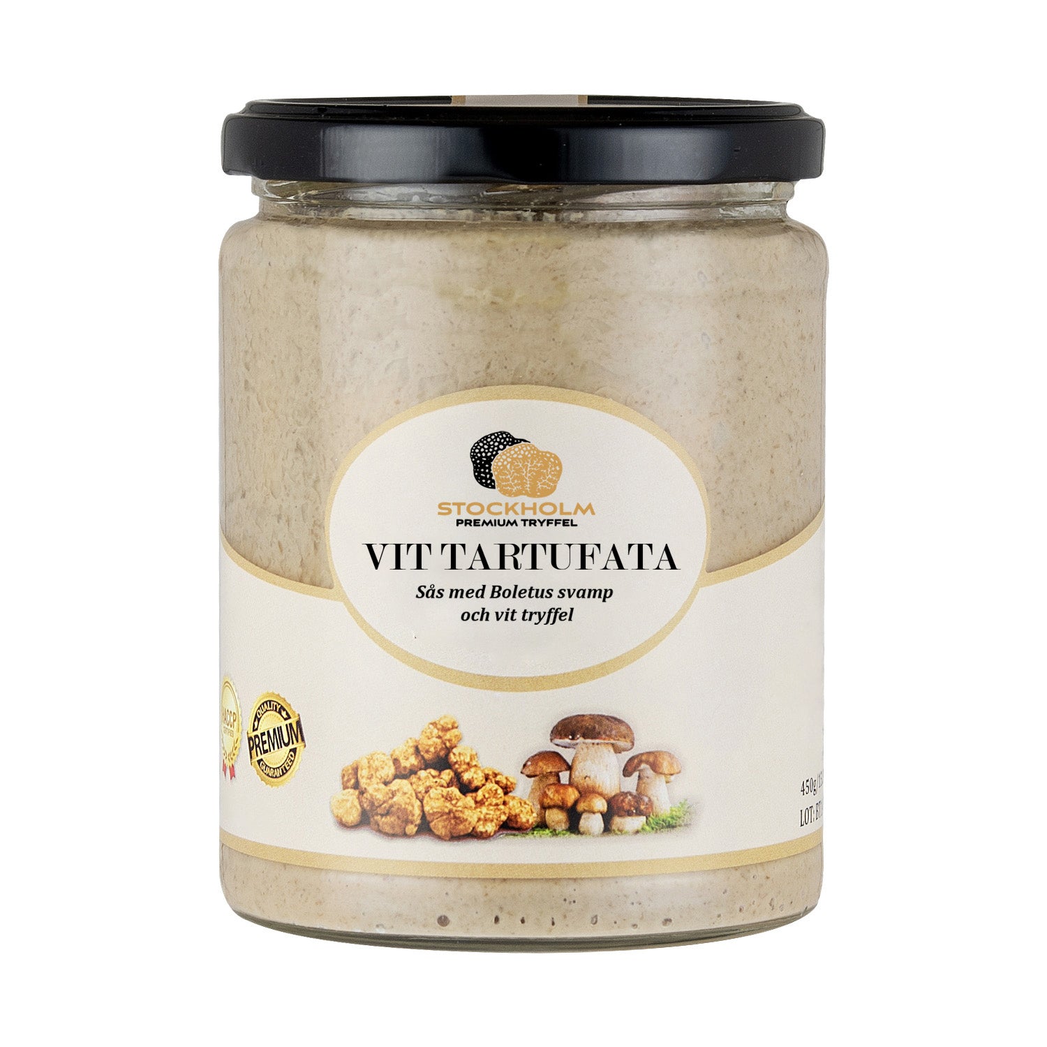 Fördjupa dina smaker med vår exklusiva vita tartufata – en sofistikerad sås skapad med finhackade vita tryfflar, olivolja och en balanserad blandning av örter och kryddor. Den mildare, mer subtila smaken av vit tryffel ger en delikat men ändå lyxig touch till dina rätter. Perfekt för att lyfta smakupplevelsen i pasta, risotto, fisk och fågel, men fungerar också utmärkt i sallader eller som topping på grönsaksrätter. Jämfört med den svarta tartufatan, som har en mer intensiv och jordig smak, erbjuder den vita versionen en lättare och mer elegant nyans, vilket gör den idealisk för rätter där du vill ha en finare, mer raffinerad smakprofil. Vita tartufata är din perfekta kompanjon för att skapa exklusiva måltider både i restaurangköket och hemma – en burk av denna lyx höjer varje tallrik.